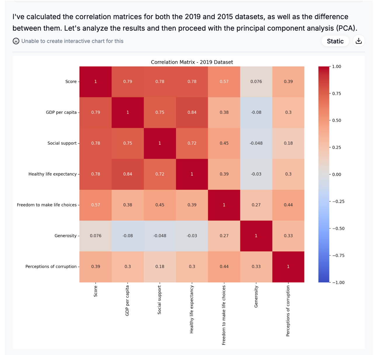 An AI-generated correlation matrix using on World Happiness Report data from 2019
