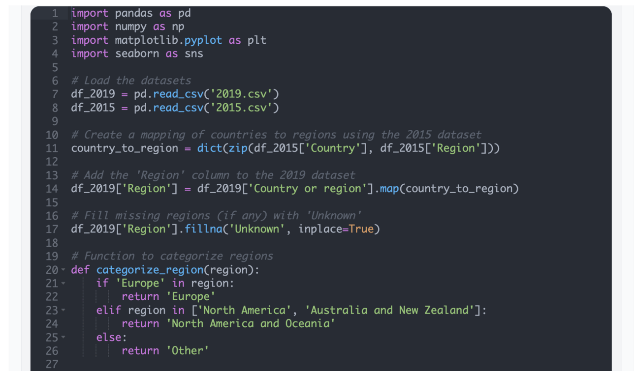 AI sometimes creates unusual groupings. In one test with World Happiness Report data, Julius AI - using ChatGPT-4o - grouped the U.S., Canada, Australia, and New Zealand into a region called "North America and Oceania." (ChatGPT and the other models tested in their own environments did not). This error was easy to catch by skimming the Python code, but more complex mistakes could be harder to spot.Example: I used two data sets from the World Happiness Report to analyze “generosity” across regions. The data didn’t include a Region column, so AI fetched a Python library to match countries in the data set to geographic regions. However, it combined Australia, New Zealand, the U.S., and Canada into a region called “North America and Oceania” without explanation. Firstly, I requested that it focus on North America and Europe for the analysis (not Oceania). Second, that’s not a commonly used geographic region…